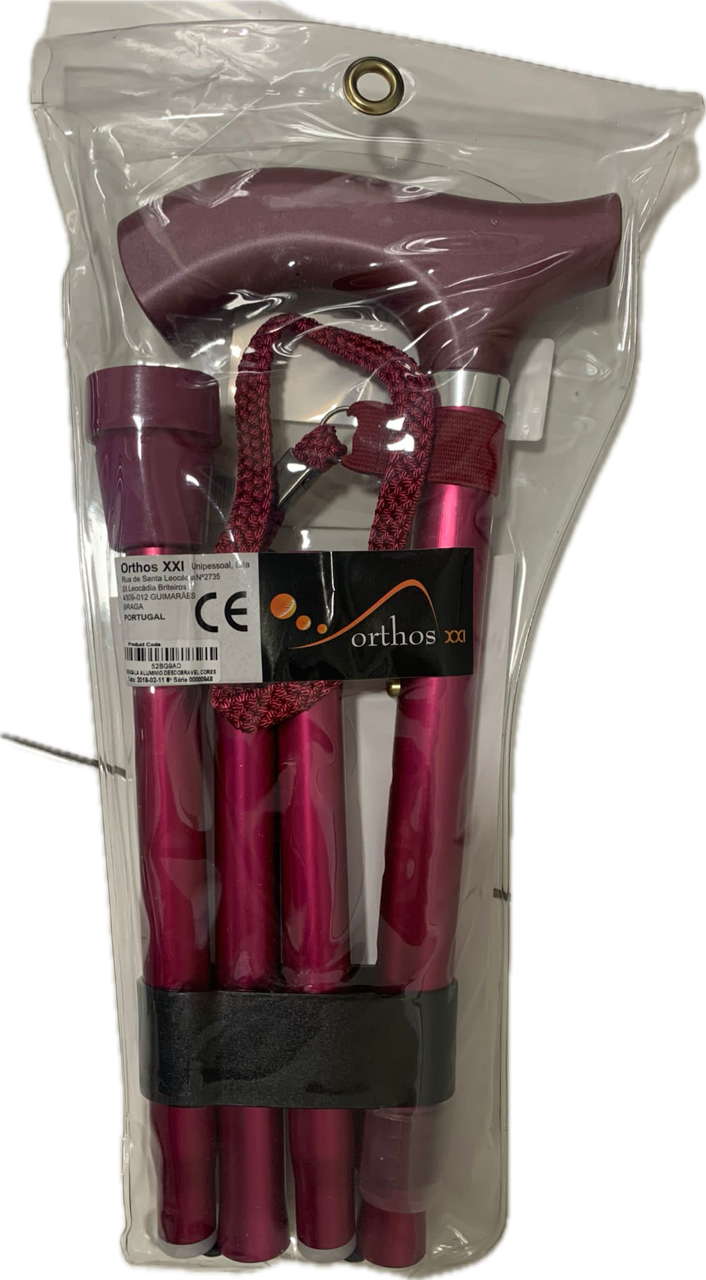 Bengala leve e resistente, fabricada em alumínio.