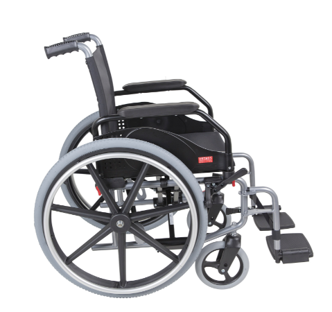 Cadeira de rodas manual robusta e prática para o dia a dia. Indicada para utilizadores com dificuldades de locomoção.
