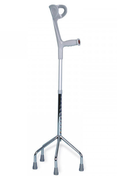 A muleta quadripé em alumínio suporta e auxilia as pessoas com incapacidade de locomoção.