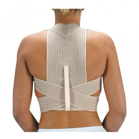 Duas faixas superiores que se estendem sobre os ombros passam por baixo das axilas, cruzam as costas e fecham no abdómen permitindo tração gradual das costas por retropulsão dos ombros até que a má postura cifótica seja suprimida.