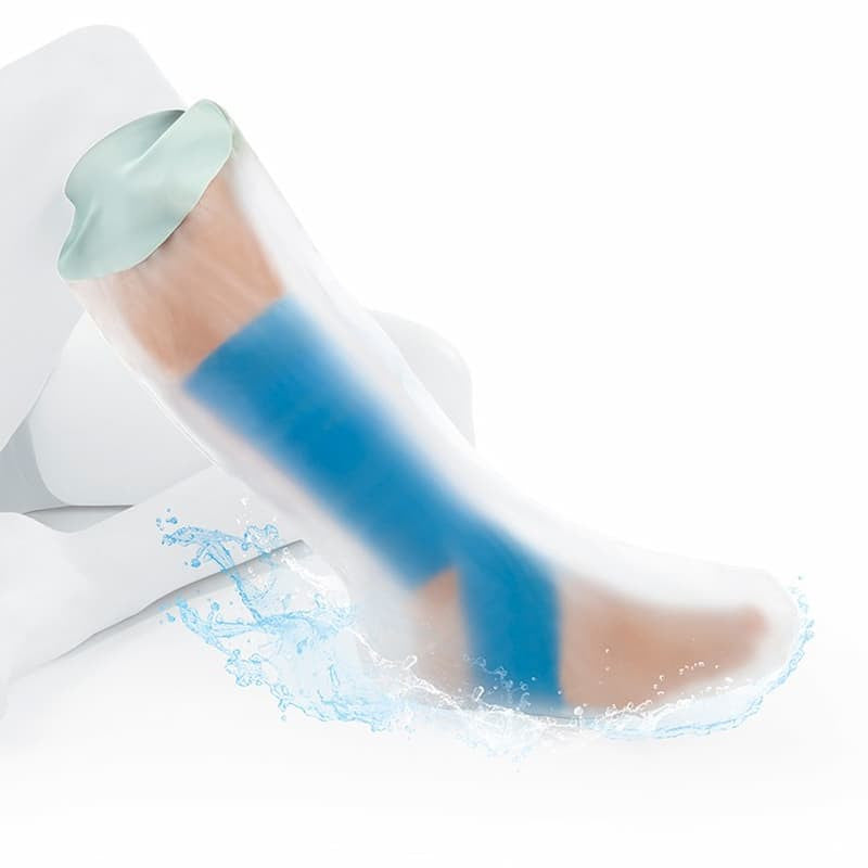 O protetor impermeável de perna é uma manga de proteção hermética para ortóteses de membros inferiores e gesso.