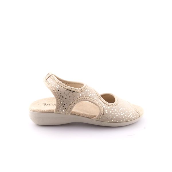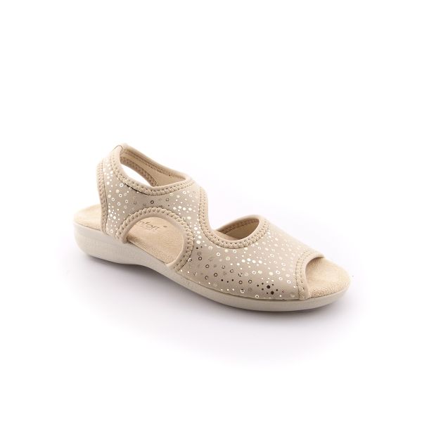 Sandália em Lycra, muito leve e capaz de se adaptar a qualquer tipo de pé, graças à sua elasticidade.