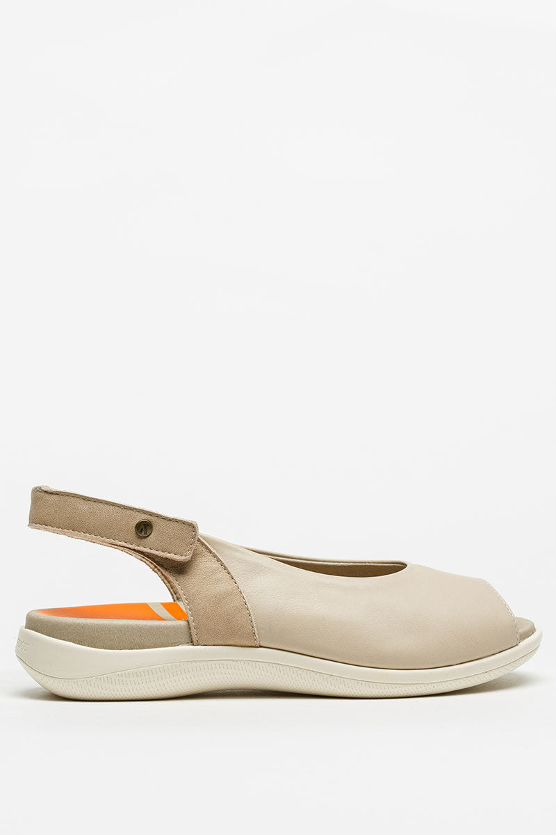 Sandália em pele, com ajuste em velcro e sola antivírica.