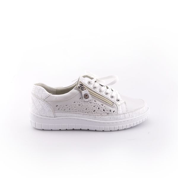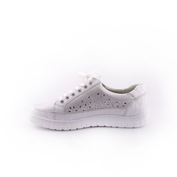 Sapatilha em pele, com cordão e fecho.